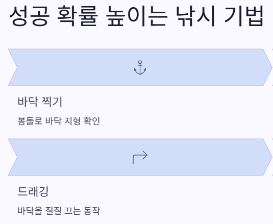 갑오징어 시즌과 금어기를 숙지했다면, 이제 손맛을 볼 차례입니다. 갑오징어는 주로 바닥 지형에 붙어 생활하기 때문에 몇 가지 핵심 팁을 알고 가는 것이 좋습니다.