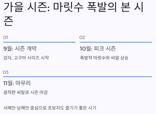 2. '가을 시즌' (9월 ~ 11월): 마릿수 폭발 '본 시즌'
