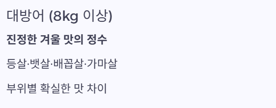 대방어 (8kg 이상): 우리가 기대하는 그 맛입니다. 등살, 뱃살, 사잇살, 배꼽살, 가마살 등 부위별로 확실하게 다른 식감과 맛을 즐길 수 있습니다. 특히 10kg 이상인 '특대방어'는 최상의 맛을 자랑합니다.