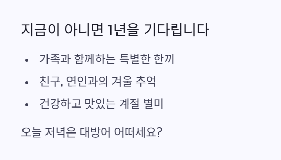 가족, 친구, 연인과 함께 신선한 대방어 한 접시로 건강하고 맛있는 겨울 보내시길 바랍니다. 오늘 저녁 메뉴는 고민하지 말고 대방어 제철 회로 정해보시는 건 어떨까요?