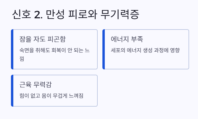 잠을 자도 잔 것 같지 않고, 늘 기력이 없다면 비타민D 부족을 의심해 보세요. 비타민D 결핍은 세포의 에너지 생성 과정(미토콘드리아)에 영향을 주어, 심각한 만성 피로와 근육 무력감을 유발할 수 있습니다.