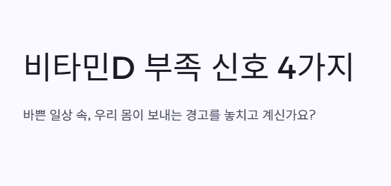 비타민D 부족 신호는 우리 몸이 보내는 중요한 경고입니다. 오늘 알려드린 4가지 증상(뼈 통증, 만성 피로, 면역 저하, 우울감)을 가볍게 여기지 마세요.