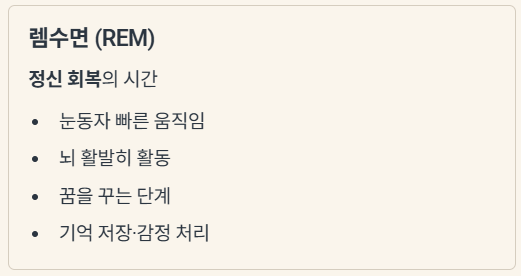 즉, N3(깊은 잠)가 '몸'을 재정비하는 시간이라면, REM(렘수면)은 '뇌'를 재정비하는 시간이라고 이해하시면 쉽습니다.