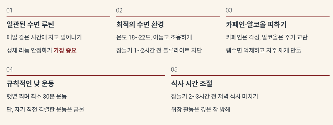 1. 일관된 수면 루틴 확립 (가장 중요)