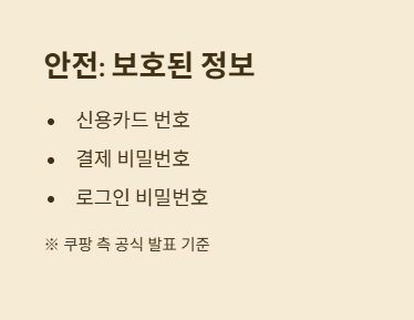 - 안전한 정보(쿠팡 주장): 신용카드 번호, 결제 비밀번호, 로그인 비밀번호